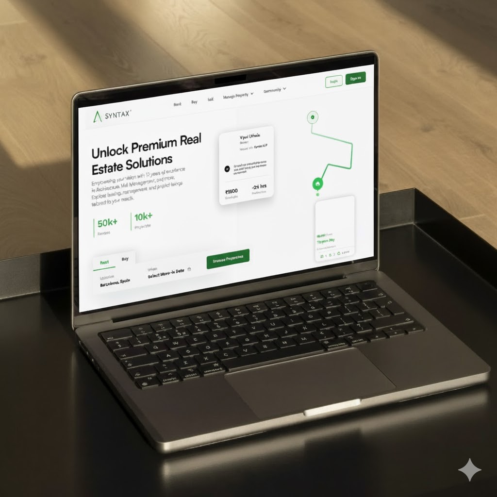 I designed a website concept for Syntax Studio LLP, a commercial real estate firm specializing in architecture and mall management. The project later focused on a co-working space website, with the goal of showcasing projects, managing listings, and presenting the company’s services in a clean, modern way.
